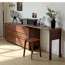 北美黑胡桃木全实木梳妆台斗柜一体简约樱桃木卧室床尾六斗柜书桌