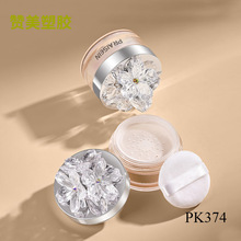 钻石花盖散粉盒 银色圆形注塑定妆粉蜜粉空盒彩妆包材批发