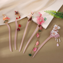 古风流苏仿玉发簪板材盘发新中式汉服精雕头饰日常挽发古装发钗女
