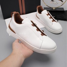 欧美2024新款懒人一脚蹬免系鞋带休闲商务鞋子男士板鞋皮鞋