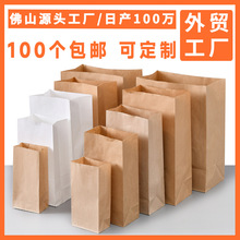 现货加厚牛皮纸袋收納方底袋烘焙烧烤淋膜外卖打包袋防油纸袋定制
