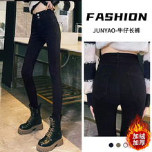 工厂批发秋冬加绒铅笔裤 小黑裤高腰双扣修身加厚加绒铅笔小脚裤