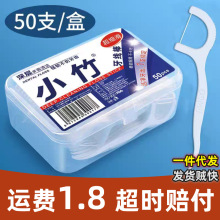 小竹超细牙线50支盒装一次性家庭装剔牙线棒随身便携牙签牙缝齿间