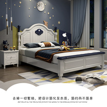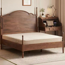 北美黑胡桃木法式复古床主卧美式双人床北欧实木樱桃木靠背原木床