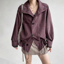 早秋女装2025薄雾绛紫~斑驳柔焦绒感~复古松弛花苞型铜氨外套夹克