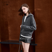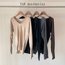 软糯圆领套头毛衣女秋冬外穿中长款日系慵懒复古开叉针织衫上衣