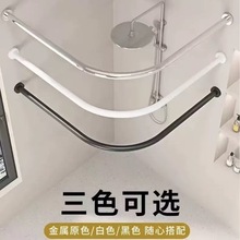 免打孔伸缩浴帘杆弧形L形U型弯轨浴室卫生间防水洗澡淋浴隔断帘子