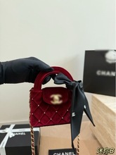 2025秋冬网红新款麂皮绒面小香风锁扣手提小包菱格绣线链条包斜挎