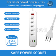 厂家批发巴西排插5插座USB充电插座南美跨境电商巴西爆款外贸插座