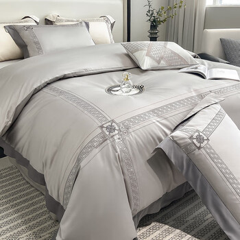 水星系列家纺轻奢A类高级感全棉长绒棉四件套贡缎被套纯棉床单1.8床笠床品