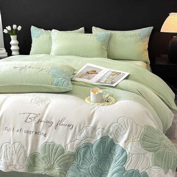 水星系列家纺高级感A类牛奶绒刺绣床上四件套冬季加厚宝宝绒被套床单床品