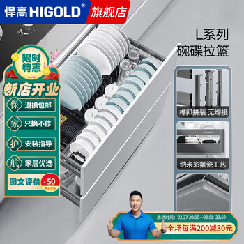 悍高 HIGOLD 橱柜拉篮厨房双层抽屉式内置碗篮304不锈钢厨房收纳碗架篮碗碟篮
