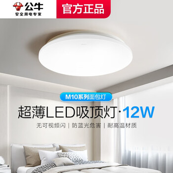 公牛(BULL)led吸顶灯阳台简约吊顶超薄款 全白色圆形浴室厨卫灯过道走廊高亮