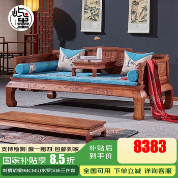 善匠良品深色名贵硬木金花梨木(学名:番龙眼)实木床中式罗汉床双人大床