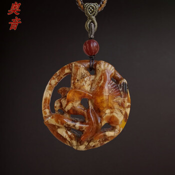 奥音辽代制式无优化老蜜蜡春山秋水项链吊坠&老蜜蜡项链
