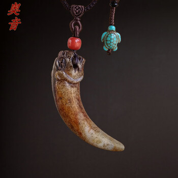 奥音S2藏传玛瑙牙黄双天园地方老天珠真老无做旧高级民族风项链吊坠