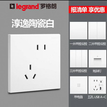 罗格朗官方开关USB插座面板淳逸白色错位斜5孔暗装二三插哑光86型