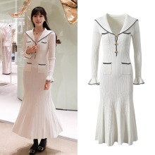 S家元单 跨境2025秋冬季新款时尚针织长袖高腰连衣裙大摆长裙女装