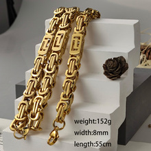 欧美热销饰品 不锈钢钛钢项链 回型长城纹双色节链 男女士项链