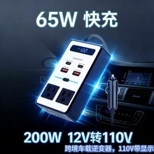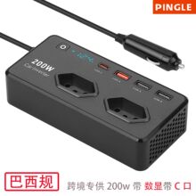 跨境车载逆变器排插巴西规快充带c口带数显汽车200w电源