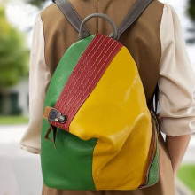 女士双肩包彩色欧美风真皮拼色背包锁扣拉链户外旅行背包休闲包