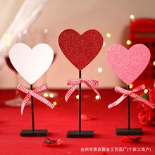 闪粉木制心形工艺品摆件情人节七夕纪念派对装饰摆件结婚摄影道具