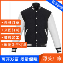 定制设计男士服装男士运动夹克女士棒球服黑色运动夹克PU皮袖子