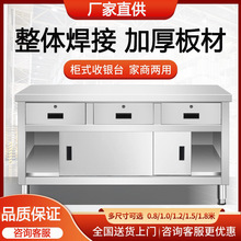 商用201不锈钢对开推拉门工作台 碗碟柜厨房餐厅操作台带抽屉
