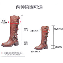 2025超纤皮带扣粗跟马丁靴不过膝长靴英伦风大码43加宽机车靴女