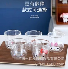 卡通双层高硼硅玻璃水杯高颜值可爱女生儿童创意家用隔热牛奶杯子