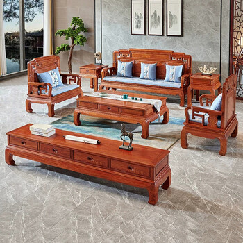 曦世 红木家具非洲花梨(学名:刺猬紫檀)实木沙发 新中式贵妃箱体转角沙发