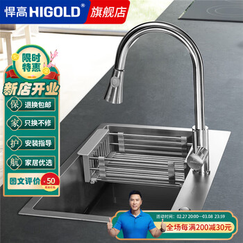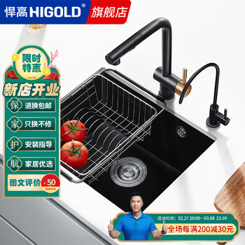 悍高 HIGOLD厨房纳米抗油污304不锈钢水槽 手工水槽台上台下大容量洗碗