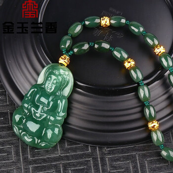 金玉 翡翠玉a货玉石玉观音男款男士钛金转运珠玉坠挂件挂绳玉佩珠子项附证书