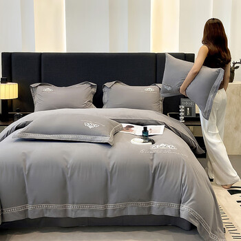 水星系列家纺高端A类母婴级180支全棉磨毛四件套纯棉刺绣被套四季床上用品