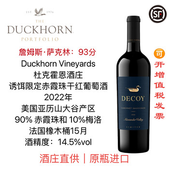 杜克霍恩美国名庄Duckhorn诱饵(Decoy)迪考伊限定赤霞珠干红葡萄酒鸭子