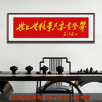 世上无难事毛体书法挂画客厅装饰画毛爷爷励志墙画领导办公室字画