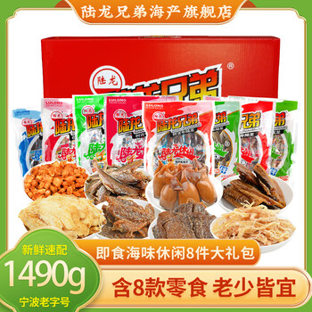 【现货】海鲜零食礼盒 陆龙休闲海味8件大礼包 1490g满满一大箱