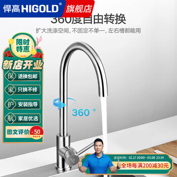 悍高 HIGOLD 304不锈钢拉丝防锈厨房水槽水龙头陶瓷阀芯不含铅龙头