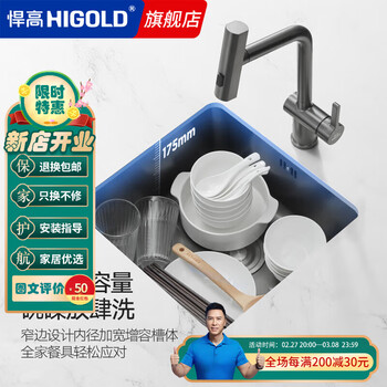 悍高 HIGOLD水槽厨房纳米抗油污304不锈钢 手工水槽台上台下大容量洗碗