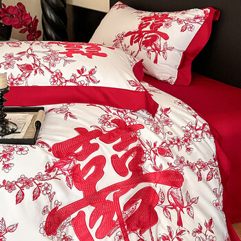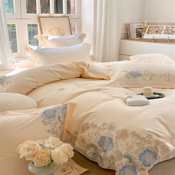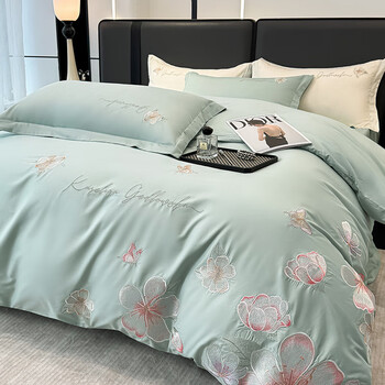 苏丽妃A类母婴级全棉纯棉新疆长绒棉四件套刺绣粉色被套床单1.8床笠床品