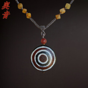 奥音西亚老法银鎏金箍镶嵌玛瑙特殊图腾多眼男女款老天珠民族风项链