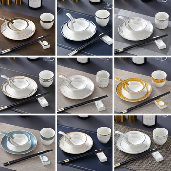 粒矜中式酒店陶瓷摆台餐具套装餐厅饭店碗碟碗筷盘宴会摆盘筷勺四件套