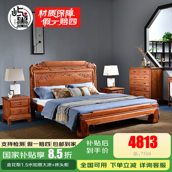 屿墨深色名贵硬木金花梨木(学名:番龙眼)实木床 中式双人大床卧室家具