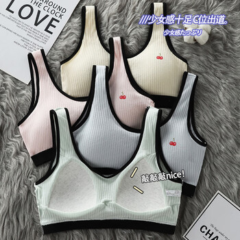 青春期少女文胸初中高中学生发育期运动纯棉小背心超薄无钢圈