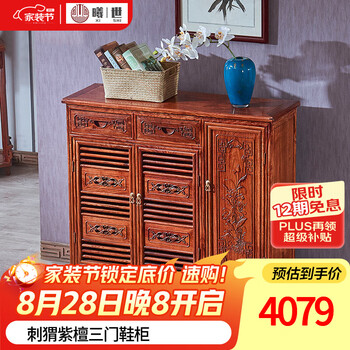 曦世 红木家具非洲花梨(学名:刺猬紫檀)实木鞋柜 玄关边柜 三门储物鞋柜