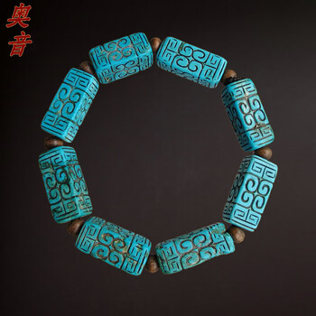 奥音战国制式无优化老绿松石勾云纹方管珠手串*高端老松石手串A