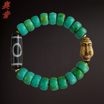 奥音Sz17玛瑙传世天圆地方老天珠无优化老绿松石佛在心中高端文玩手串