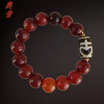 奥音S10藏传佛玛瑙特殊图腾爱心三眼老天珠无优化老绿松石多宝手串