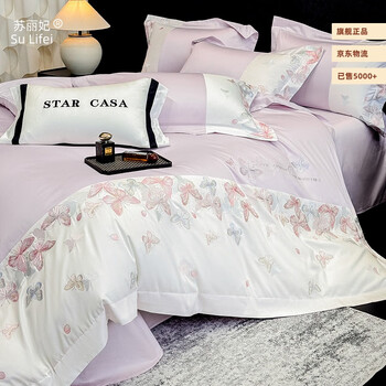 苏丽妃180支A类母婴纯棉刺绣四件套全棉长绒棉被套高档亲肤裸睡床上用品