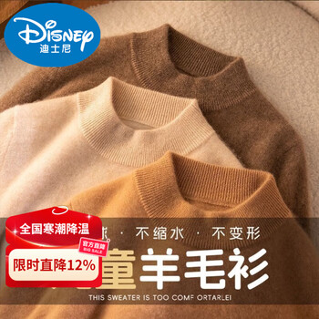 迪士尼儿童羊毛衫男女童秋冬宝宝加厚中大童装半高领套头中领毛衣打底衫